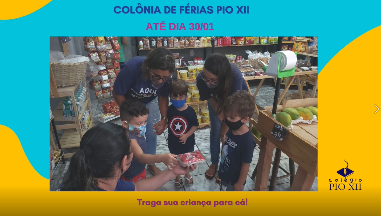 Leia maisNa sexta-feira (08/01), no final da tarde, encerramos a primeira semana da Colônia de Férias Pio XII. Foram cinco dias maravilhosos, regados a muitas brincadeiras refrescantes, risos, carinho e cuidados. O objetivo da colônia é garantir que as crianças, cujos pais trabalham em janeiro, tenham férias realmente divertidas. Esse ano iniciamos no dia 05/01 e […]