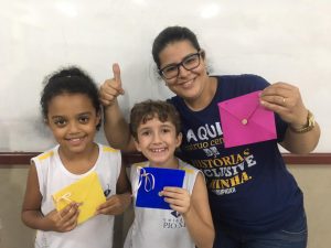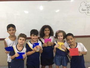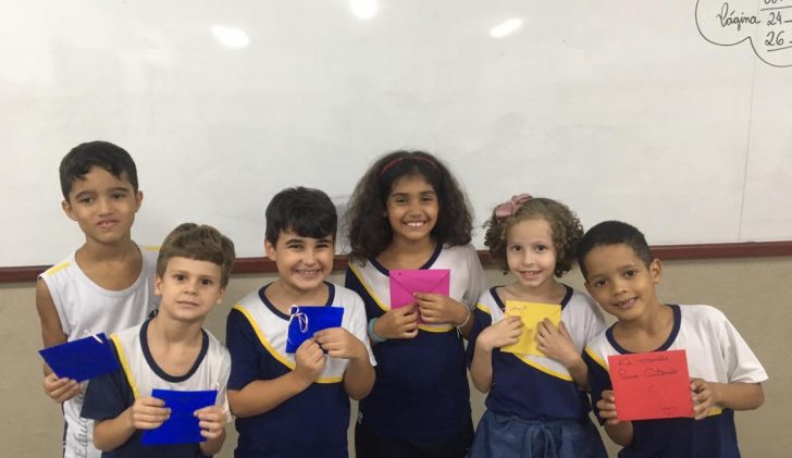 A turma do 2º ano B está aprendendo sobre esse assunto na disciplina de Língua Portuguesa. Além de saberem sobre como funciona, eles também aprenderam sobre os componentes da carta, remetente e destinatário, assunto e também o uso de selos.