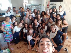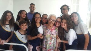 Os alunos fizeram uma acolhida super carinhosa com os idosos. Cada aluno fez questão de conversar com os vovôs e as vovós que, por muitas vezes, se sentem sozinhos e abandonados no local. Eles também cantaram músicas e dançaram com os idosos, fazendo a alegria do asilo.